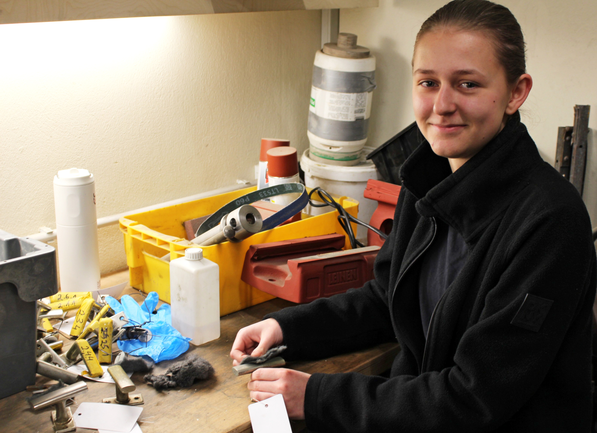 Maximilian Kinder hat in der Malerei und Lackiererei Fensterflügel und Eisengitter grundiert und gestrichen. Er lernte auch, alten Kitt herauszukratzen und neuen einzusetzen. In der Metallwerkstatt reinigte er Fensterelemente per Sandstrahlen und war erstaunt, welche Effekte sich erzielen lassen. „Es ist wirklich cool, wie alte Fenster aufgearbeitet werden. Hier sehen wir jeden Schritt“, ist auch Lejla begeistert.