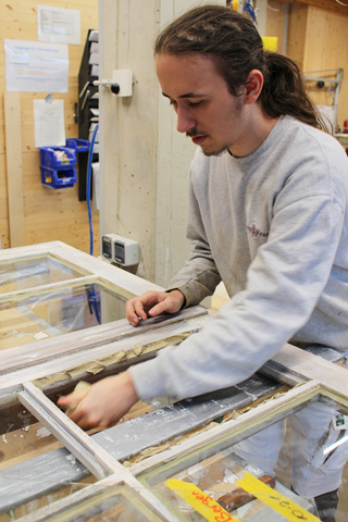Fensterkitt erneuern gehört zu den Aufgaben von Maximilian, der in der Malerei und Lackiererei eingesetzt ist