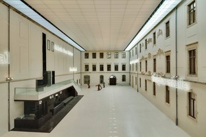 Im zweigeschossigen 60 m langen Brückenbauwerk über dem Innenhof lagert wertvolle Kunst