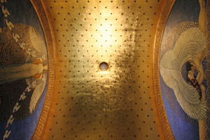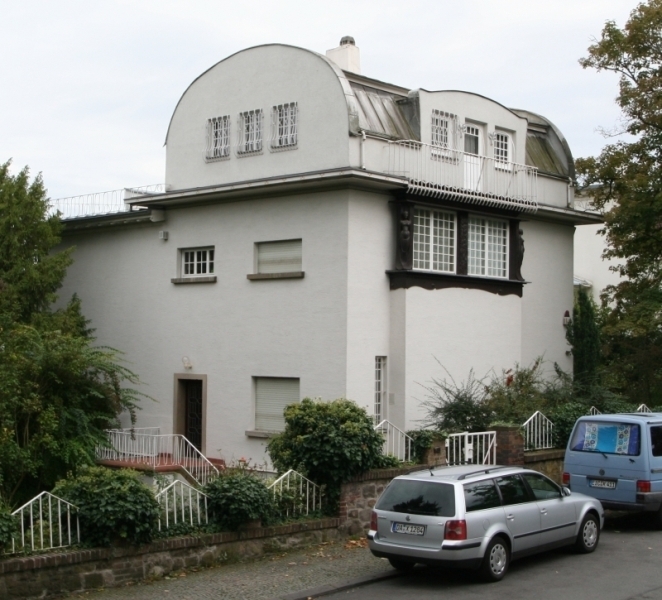 Wenn man von der Mathildenhöhe spricht, kommt einem zunächst der 1906 ebenfalls von Olbrich erbaute Hochzeitsturm in den Sinn – ein Geschenk der Darmstädter an ihren Fürsten Ernst Ludwig. Der war es auch, der Olbrich nach Darmstadt holte und es ermöglichte, dass sich dort in der Zeit von 1899 bis 1914 immer mehr Künstler ansiedelten. Der Erste Weltkrieg bereitete dem kreativen Treiben ein jähes Ende. Doch bis dahin waren auf der Mathildenhöhe nicht nur zahlreiche Kunstwerke, sondern vor allem auch Gebäude entstanden. Auch der Künstler Peter Behrens – als Architekt Autodidakt – entwarf eines der Künstlerhäuser auf der Mathildenhöhe. Wir haben uns natürlich den Hochzeitsturm, die Ausstellungshalle und das Ateliergebäude von Olbrich sowie die russische Kapelle angesehen. Letzteres hat nichts mit den Jugendstilbauten zu tun und stand vor diesen bereits auf der Mathildenhöhe. Vor allem sind wir aber in die Künstlerhäuser hineingegangen – zumindest in die, in die man hineingehen kann, denn die meisten werden von Privatpersonen bewohnt. Im 1901 erbauten Haus Olbrich befindet sich heute das Deutsche Polen-Institut. Das Haus hat allerdings nicht mehr viel mit dem ursprünglichen Entwurf von Olbrich zu tun: Das große Mansarddach ist verschwunden, außen sind nur noch die blauen Kachelbänder original und im Inneren hat sich so viel verändert, dass man nicht mehr von Original sprechen kann. Ganz anders sieht es in dem im selben Jahr von Olbrich entworfenen Großen Haus Glückert aus. Dieses wurde von der Stadt erworben und in seinen ursprünglichen Zustand zurückversetzt. Genutzt wird es heute von der Deutschen Akademie für Sprache und Dichtung. Wirklich beeindruckend ist im Inneren das Treppenhausatrium mit Kamin, von dem wir natürlich Fotos mitgebracht haben. Aber schauen Sie selbst, was wir noch alles auf der Darmstädter Mathildenhöhe entdeckt haben.