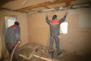 Da das Gebäude denkmalgeschützt ist, kam eine Innendämmung aus Holzfasern zur Ausführung