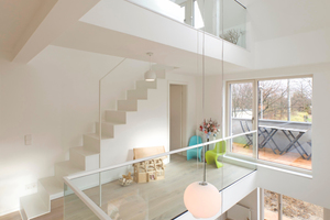Durch eine 2 x 4 m große Öffnung in den Ober- und Dachgeschossdecken entsteht im Haus ein Lichthof und Luftkamin