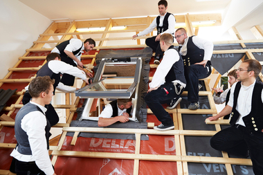 Zwei Neuzugänge verzeichnet das Standardsortiment der Velux Lichtlösungen mit den Fensterkombinationen Überfirst und dem Studio-Fenster „3 in 1“. Bei der Überfirstlösung verbinden Dachhandwerker mithilfe eines standardisierten Einbausets zwei oder mehr Dachfenster über dem First. Der Einbau ist mit oder ohne Firstziegel möglich. Die Anzahl der Fensterkombinationen ist frei wählbar. Der zugelassene Dachneigungsbereich liegt bei 15 bis 55 Grad. Da diese Lichtlösung in der Regel schon durch ihre Lage mit schwer zugänglichen Bediensituationen einhergeht, empfiehlt sich der Einsatz mindestens eines automatischen Dachfensters und die Verwendung der pflegeleichten Kunststoff-Ausführung. Der Einau des Studio-Fensters „3 in 1“ aus drei verbundenen Fensterelementen gestaltet sich durch die Konstruktion mit einem einzigen Blendrahmen fast so einfach und schnell wie bei einem Einzelfenster; der mittlere, fest verglaste Flügel ist schon vormontiert.