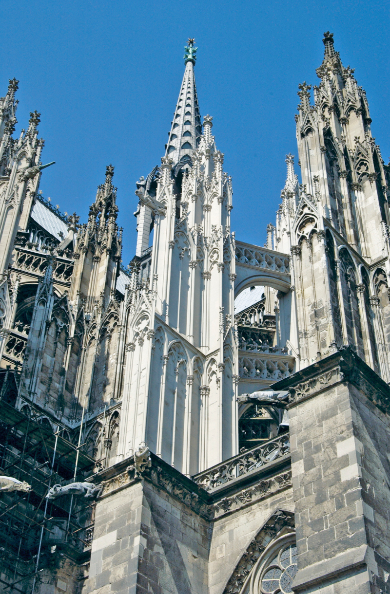 Dieser Philosophie folgend veranlasste der damaligen Kölner Dombaumeister Prof. Arnold Wolff nach Besichtigung einiger im Funcosil-Siliconharz-Farbsystem beschichteter Objekte die Beschichtung zweier Fialen im Siliconharzsystem. Eine Reinigung sowie eine festigende Grundierung mit Kieselsäureester gingen der Beschichtung voran. Nach einjähriger Standzeit der Fialen ohne erkennbare Alterungserscheinungen folgte die Fertigstellung eines Gesamtstrebewerks: Die Restauratorengemeinschaft Maul & Keller aus Köln führte die Untergrundkonsolidierung im KSE-Modul-System aus, und Mitarbeiter der Dombauhütte trugen die Beschichtung mit Siliconharz-Schlämmlasur auf. Dabei wurde das Material so eingestellt, dass es durch Auswahl entsprechender Pigmente den Charakter einer Kalkschlämme erhielt.