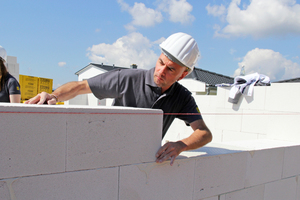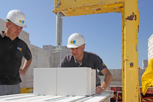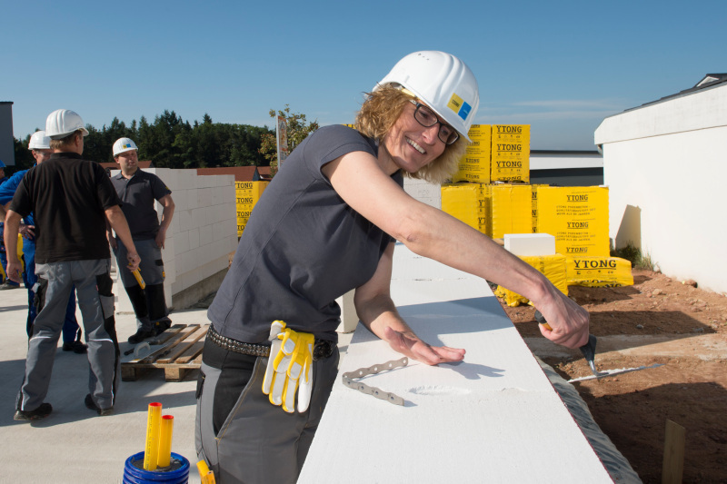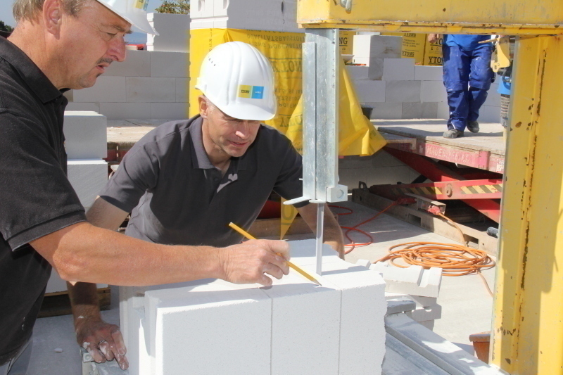 bauhandwerk-Redakteure arbeiten auf einer Ytong-Baustelle in Wernberg mit