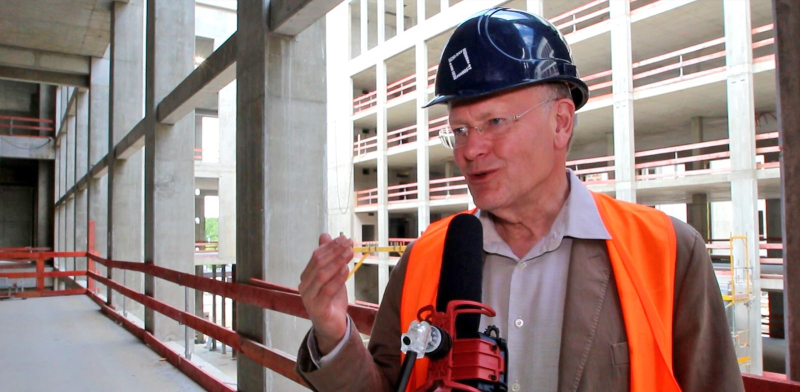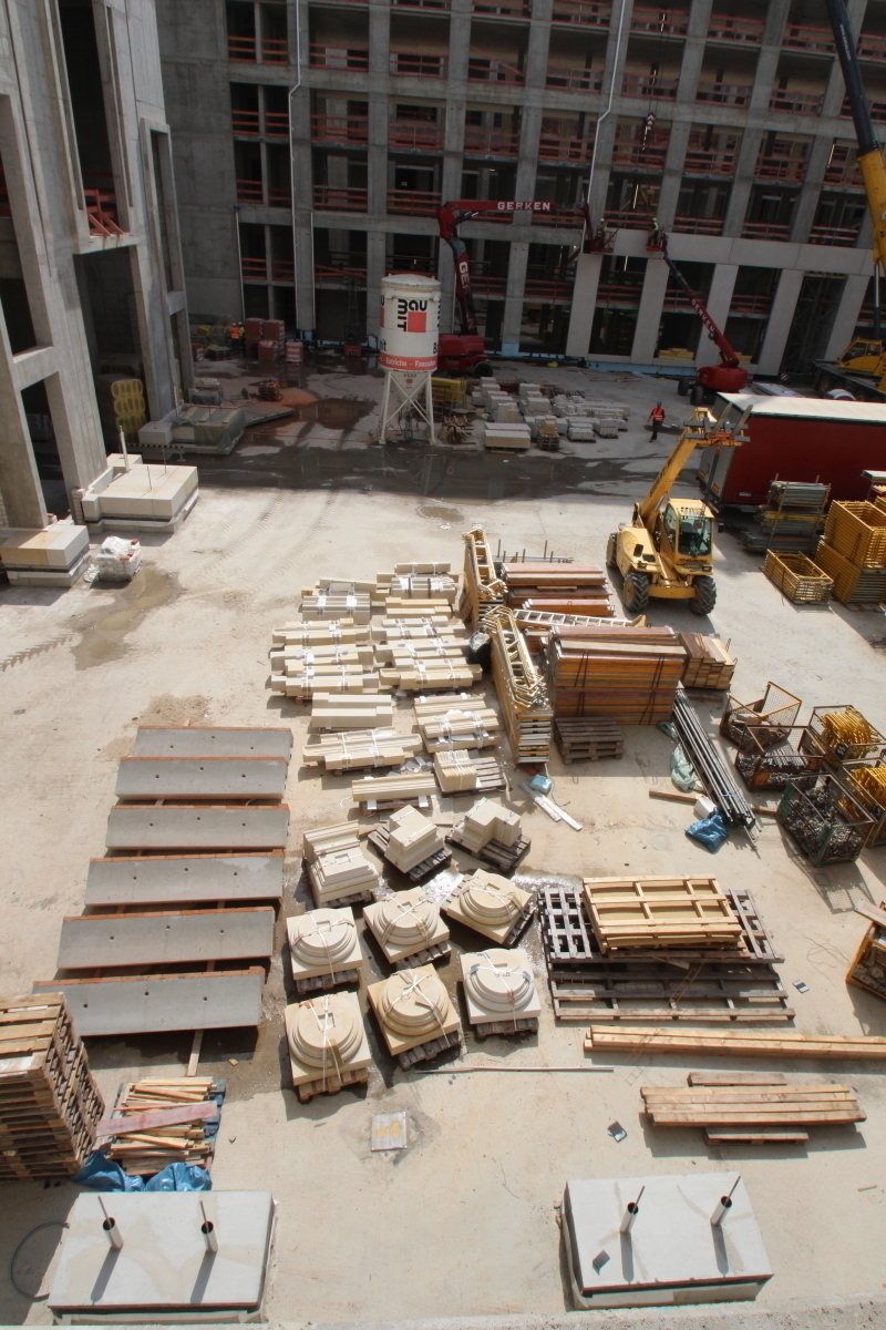 Alles läuft nach Plan: „Wir wollen in diesem Jahr das Gebäude baulich dicht bekommen, damit wir nächstes Jahr mit dem Innenausbau beginnen können“, so Manfred Rettig. Parallel dazu laufen natürlich auch die Arbeiten an den Fassaden weiter. „Diese werden in diesem und im nächsten Jahr im wesentlichen errichtet werden“, erklärt Rettig. Im übernächsten Jahr werden dann die Ziegelaußenwände verputzt. „Wir haben fünf verschiedene Firmen, die an diesen Fassaden arbeiten, und die machen alle eine gute Arbeit“, ist Manfred Rettig überzeugt.