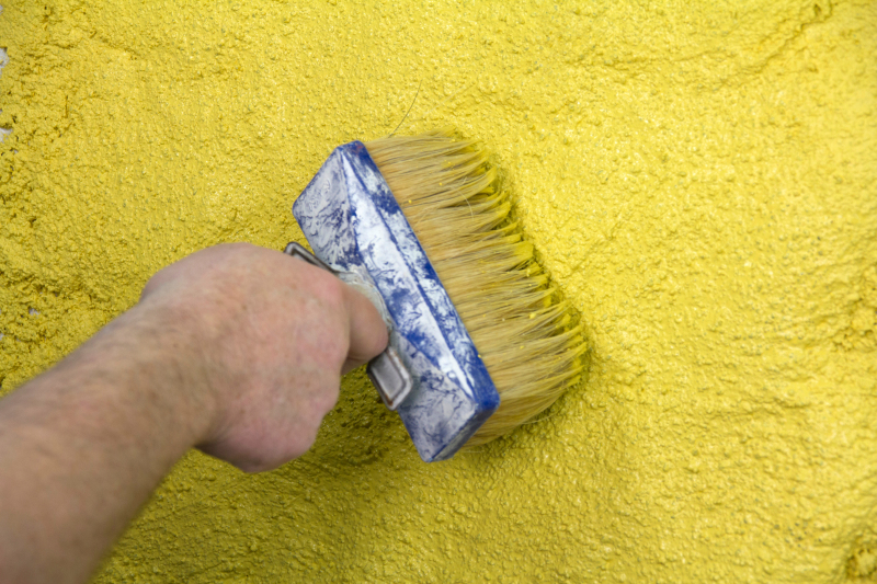 Auch heute noch wird der Mörtel wie in den vergangenen Zeiten per Hand mit einer Dreieckskelle gleichmäßig angeworfen. Wenn der Putz leicht angezogen hat, bearbeitet der Handwerker die Oberfläche mit Malerbürste/Holzbrett und Wasser weiter, so dass die gewünschte Struktur entsteht. Je ungleichmäßiger der Putz angeworfen wird, umso stärkere optische Unterschiede treten in der Oberfläche des Putzes auf.