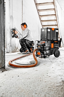 Mit den neuen Volumensaugern erneuert Protool sein Sortiment an Saugern mit automatischer Abreinigung für den rauen Baustellenalltag. Die neuen Modelle VCP 260/480 garantieren eine starke Saugleistung bei konstantem Durchzug. Die Sauger sind für Nass- sowie Trockenreinigung geeignet und sind in den Staubklassen L, M und H sowie in den Volumenvarianten 26 und 48 Liter erhältlich. Durch die automatische Abreinigung – AUTOclean, wird der Filter in regelmäßigen Abständen automatisch gereinigt. Dadurch bleibt die Saugleistung, die mit einem Volumenstrom von 3900 l/min bzw. 240 mbar Unterdruck ihresgleichen sucht, konstant hoch. Arbeitsunterbrechungen zum Reinigen des Hauptfilters werden vermieden, auch bei Tätigkeiten, bei denen viel Staub entsteht, wie beim Abfräsen von Putz oder Fliesenkleber. Für den optimalen Wirkungsgrad der automatischen Abreinigung sorgt der Spezial AC-Saugschlauch, ein Bestandteil des serienmäßigen Antistatikpakets. Damit werden im Saugschlauch entstehende elektrische Ladungen wirkungsvoll abgeleitet. Die neuen Sauger sind optimal auf den Einsatz von Elektrowerkzeugen abgestimmt. Alles passt zusammen, Sauger, Schlauch, Muffe und Werkzeug. Die integrierte Steckdose mit Einschaltautomatik erlaubt es, das Elektrowerkzeug direkt an den Sauger anzuschließen. Nach Einschalten des Werkzeugs startet der Sauger automatisch. Große, stabile Räder, extrem bruchsichere Kunststoffteile und ein widerstandsfähiges Fahrwerk mit Stahlachse sorgen für ein Höchstmaß an Robustheit und eine optimale Beweglichkeit auf grobem Baustellenuntergrund, so dass auch Treppen oder Schwellen keine Hindernis darstellen. Der niedrige Schwerpunkt machte die der neuen VCP AC-Sauger zudem äußerst kippstabil.