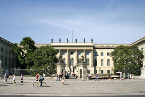 Die meisten Gebäude der 1809 gegründeten Berliner Universität – die 1949 in Humboldt-Universität umbenannt wurde – befinden sich in Berlin-Mitte, so auch die wirtschaftswissenschaftliche Fakultät in der Spandauer Straße. Für die umfassende Modernisierung des Hörsaales 202 entwickelten die Architekten Hüffer.Ramin unter Berücksichtigung des schiefwinkligen Grundrisses und der Form des Daches ein räumliches Konzept mit einer gebogenen und in Schuppen geglie-