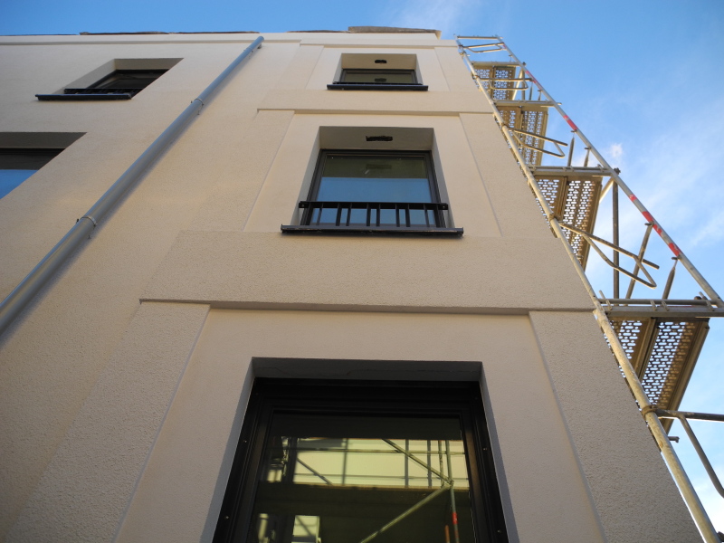 Der Baustil passt sich dem klassischen Villenstil mit klaren geometrischen Formen und reinweißen Fassaden der Umgebung an. Dazu gehört auch, dass die Handwerker an den Fenstern, Balkonen und der Attika auf dem WDV-System Decoprofile von Sto verklebten, die an gründerzeitliche Wohnbauten erinnern.