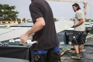 „Velux Modular Skylights“ wurden für den Einsatz in öffentlichen und gewerblichen Gebäuden wie Schulen, Krankenhäuser oder Einkaufszentren gemeinsam von Velux und dem renommierten britischen Architekturbüro Foster + Partners entwickelt. Entstanden ist dabei eine Oberlichtlösung, die dezentes und elegantes Design mit den Vorzügen vorgefertigter und einfach zu montierender Module verbindet. Mit Lichtband, Sattel-Lichtband, Stufen-Lichtband und dem Stufen-Sattel-Lichtband, Atrium und Sheddach bietet Velux standardisierte Lösungen für unterschiedliche Anforderungen in Bezug auf Größe, Anwendungssituation und Funktionalität. Die einzelnen Module sind wahlweise zu öffnen oder feststehend. Verfügbar sind sie in einer Breite von 67,5 bis 100 cm und einer Höhe von 120 bis 300 cm. „Modular Skylights“ lassen sich zu beliebig langen Licht- oder Sattel-Lichtbändern addieren. Zudem können Licht- oder Sattel-Lichtbänder zu einer großflächigen Atrium-Dachverglasung kombiniert werden, und das Wandmontage-Lichtband ermöglicht den Anschluss an eine aufgehende Wand.