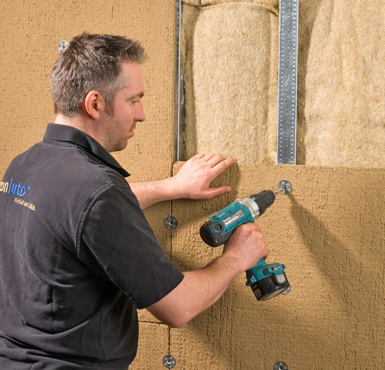 Die Lehmbauplatten von Conluto eignen sich zur Beplankung von Innenwänden, Holzständerwerken, Trockenbau- oder Lattenkonstruktionen. Außerdem sind sie für Trennwände und den Dachgeschossausbau geeignet. Es gibt sie in 16 und 22 mm Dicke. Sie kombinieren eine Trockenbaukonstruktion mit den raumklimatischen Vorteilen von Lehm. Die Platten sind 125 x 62,5 cm groß und somit größer als ihr Vorgängermodell. Allerdings hat sich aufgrund des neuen Plattenmaßes die Haltetelleranzahl pro Platte verändert. Die entsprechende Menge ist dem Technischen Merkblatt oder dem Arbeitsblatt zu entnehmen. Auf tragfähigen Untergründen, etwa fest haftenden Putzflächen, vorbehandelten Betonwänden oder Mauerwerk kann die Lehmbauplatte auch mit Lehm-Klebe- und Armierungsmörtel verklebt werden. Die Platten fallen unter die Baustoffklasse A1 (nicht brennbar).