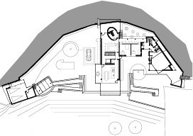 Der Neubau bildet ein Halbrund aus, in dessen Zentrum zuvor ein Altbau aus dem Jahre 1955 stand – das Elternhaus des Bauherrn, das 1987 saniert und erweitert wurde. Gedanken an eine Sanierung des gesamten Altbaus hatte der Bauherr recht bald verworfen. Stattdessen entschied er sich für einen Neubau und lud vier lokale Architekturbüros zu einem Ideenwettbewerb ein. Transparenz und Offenheit, Modernität und Energieeffizienz waren als Ziele gesetzt, allerdings ohne weitere geschmacklich-stilistische Vorgaben. Aus dem Wettbewerb ging der Entwurf von Ladleif Architekten aus Kassel als Sieger hervor. Der Bauherr hatte sich offen für einen außergewöhnlichen Gesamtentwurf gezeigt, dessen markantestes Merkmal ein länglicher, quer zum Hang liegender Baukörper ist. Der 1987 an das Elternhaus angebaute Teil des Altbaus blieb stehen und schließt sich saniert an den Neubau an. In diesem richten sich auf beiden Ebenen die hauptsächlichen Wohnzonen gleichwertig zur Ausblickseite aus – im Erdgeschoss die großflächig über Eck verglaste Wohnküche, im Obergeschoss der Wohnraum mit vorgelagerter Terrasse.