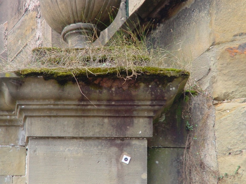 An allen älteren Mauerwerksflächen ist zudem eine biologische Schädigung der Oberfläche auf den ersten Blick zu erkennen: