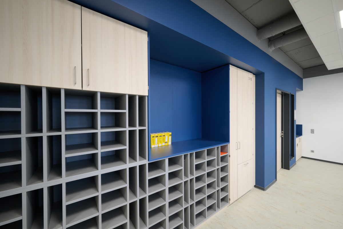Denn das Farbkonzept des Innenarchitekturbüros Lindemann Interior Design GmbH sah besonders in den Fluren und Klassenräumen eine fröhliche, intensive Farbgebung vor, die auf die bereits vorgegebenen Möbel abgestimmt waren. Die Beschichtung im seidenmatten Glanzgrad ist robust und leicht zu reinigen. Laut Herstellerangaben ist „Vitashine“ desinfektionsmittelbeständig und mit der Nassabriebklasse 1 klassifiziert.