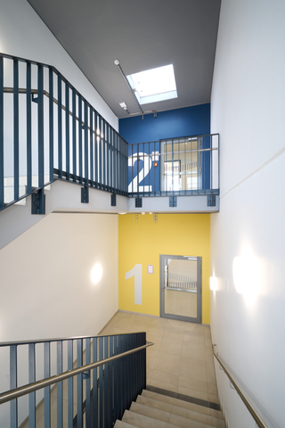 Die höchsten Anforderungen an die Schlussbeschichtung ergaben sich im Bereich der Treppenhäuser, Klassenräume und Flure
