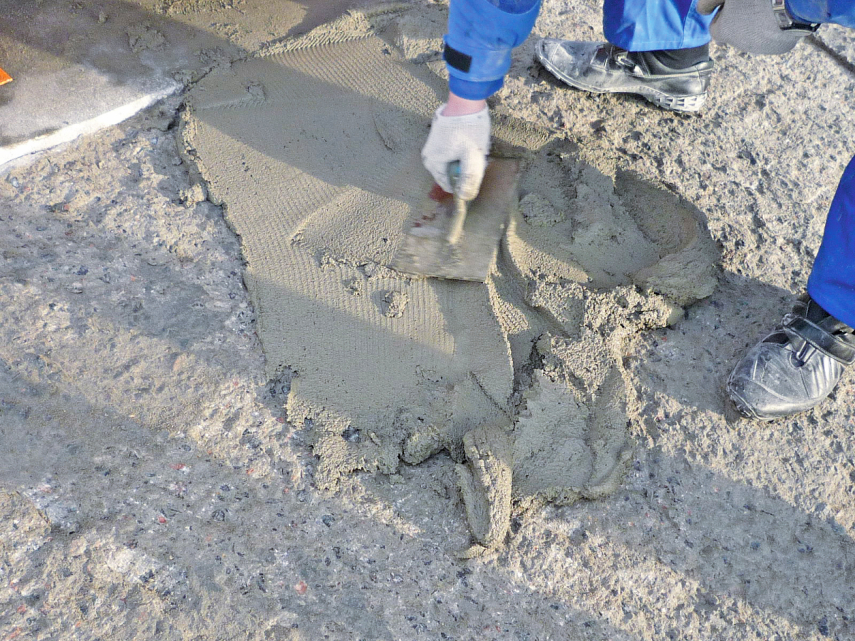 Für Industrieböden eignen sich standfeste Reparaturmörtel. Der „Repafast Tixo” lässt sich bis -10 °C verarbeiten