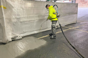 Um die Vorgabe des Bauherrn zu erfüllen, den Parkhausbetrieb auch während der Sanierung weiterzuführen, wurde die Baumaßnahme in sechs Abschnitte unterteilt. Somit konnten Sperrzeiten komplett vermieden werden. Durch die Nutzung externer IBC-Behälter anstelle vieler kleiner Weißblech-Gebinde ist die Sanierung mit „SAM“ außerdem ein nachhaltiges Verfahren: Neben weniger Lagerplatz benötigen die Handwerker weniger Lieferanfahrten zur Baustelle. Zudem wird die Materialausbeute erhöht, da es keine Anhaftungen im Gebinde gibt, die mit entsorgt werden. Durch das integrierte Dieselaggregat ist der Betrieb autark, sodass auch die Energiekosten überschaubar bleiben und keine Stromversorgung geplant werden muss. Die Maschinentechnik unterstützt das ergonomische und stressfreie Arbeiten, und das bei erhöhter Flächenleistung.