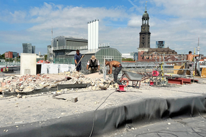 Die neue Aufteilung der Grundrisse erfolgte mit Innenwänden in Trockenbauweise. „Zu den Fluren gibt es viele Glaswände, damit es dort nicht so dunkel ist“, sagt Torsten Stern. In den Büros und in der Harbour-Lounge, dem Eventbereich und Working Space im fünften Geschoss wurde Teppich verlegt und in den Werkstätten der Uhrmacher Linoleum, damit heruntergefallene Uhrenteile leichter auffindbar sind.