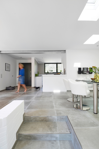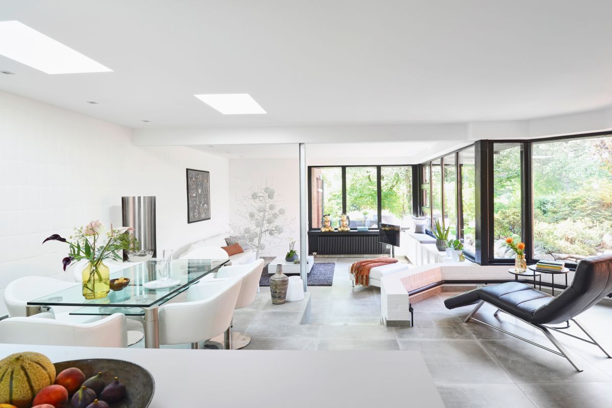 Damit der Bungalow den Ansprüchen des Ehepaars entsprechen würde, standen also umfassende Modernisierungsarbeiten an. Heute ist er kaum wiederzuerkennen: Dank abgerissener Wände beeindruckt das Gebäude durch einen deutlich offeneren Grundriss mit einem wesentlich größeren Bad. Es wirkt zudem mit seiner modernen, hellen Farbgestaltung und Einrichtung, die sich durch das ganze Haus zieht, deutlich freundlicher. Aufgrund der zwei komplett geschlossenen Außenwände und der nur in der Küche für Fenster geöffneten vorderen Hausfront, war es besonders wichtig, zusätzliches Licht in die Tiefe des Raumes zu holen. Dies ist heutzutage dank moderner Oberlichter mit hervorragender Wärmedämmung ohne Einbußen bei der Energieeffizienz eines Hauses möglich.