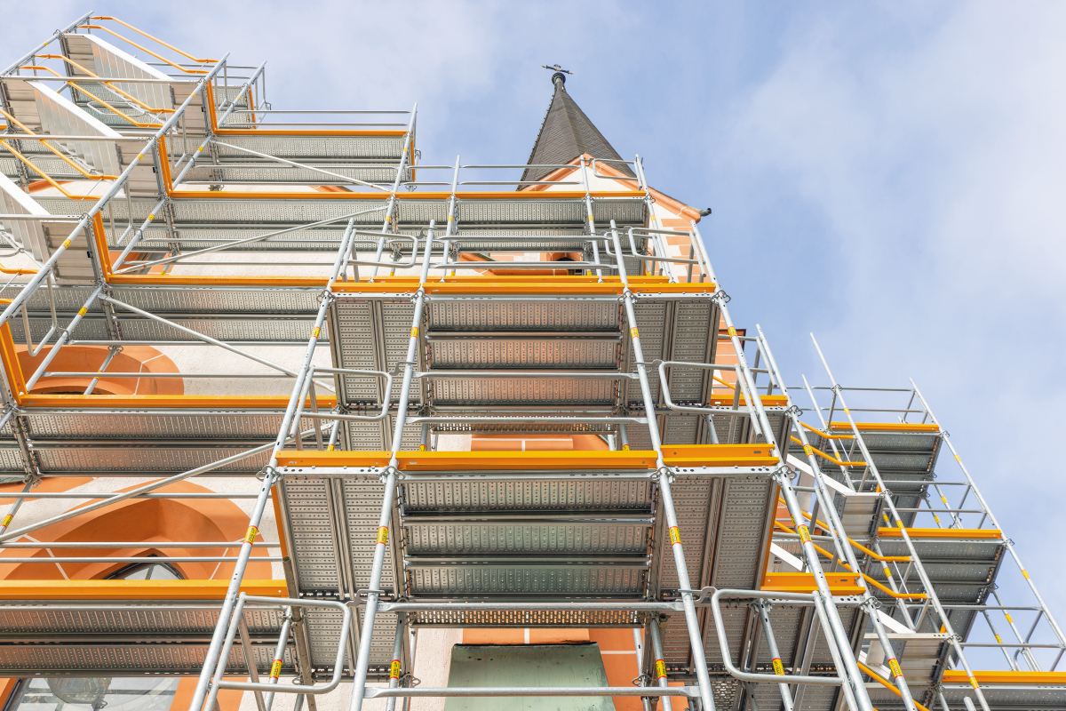 Kirchensanierung in Arzberg im Fichtelgebirge mit dem Gerüst-Baukasten „Peri Up“