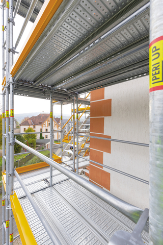 Der integrierte Gerüstknoten am „Easy Stiel” und das metrische „Peri Up”-Systemraster ermöglichen eine hohe Flexibilität, kombiniert mit einer einfachen und sicheren Montage