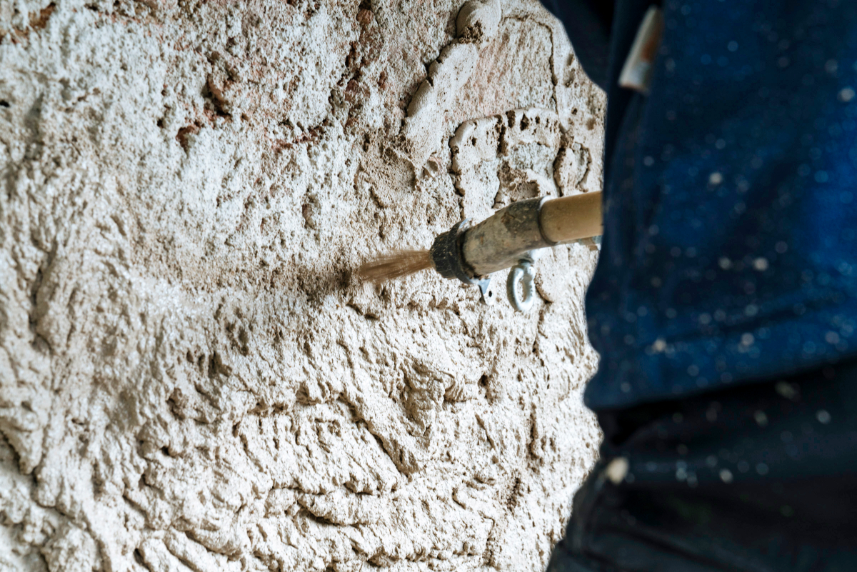 Die Handwerker trugen den Sakret-Vorspritzmörtel „VSM“, einen zementären Spritzmörtel zur Verbesserung der Haftung und des Saugverhaltens des Untergrundes, vor dem Anlegen des Putzes auf. Es folgte als Grundputz der Trass-Kalk-Mörtel „TKM 0-4“ und danach der Trass-Kalk „TKM 0-2“. Dieser zeichnet sich durch seine guten Hafteigenschaften aus, beispielsweise als Mauer-, Vormauer- und Fugenmörtel für alle Mauersteine, als Versetzmörtel bei Steinmetzarbeiten oder als Handputzmörtel. Wegen seiner Ähnlichkeit zu historischen Mörteln und seiner guten Verträglichkeit mit Natursteinen ist er im Denkmalschutz und in der Altbausanierung gefragt.