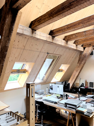 Das Pfarrhaus Elisabethen in Basel war ein Ort der Begegnung zwischen der Pfarrfamilie und der Kirchengemeinde. Nach der Sanierung dient es als Raum für kreative Arbeiten. Insbesondere das Dachgeschoss barg großes Potenzial und zeigt sich jetzt als lichtdurchflutetes Büro und Atelier.