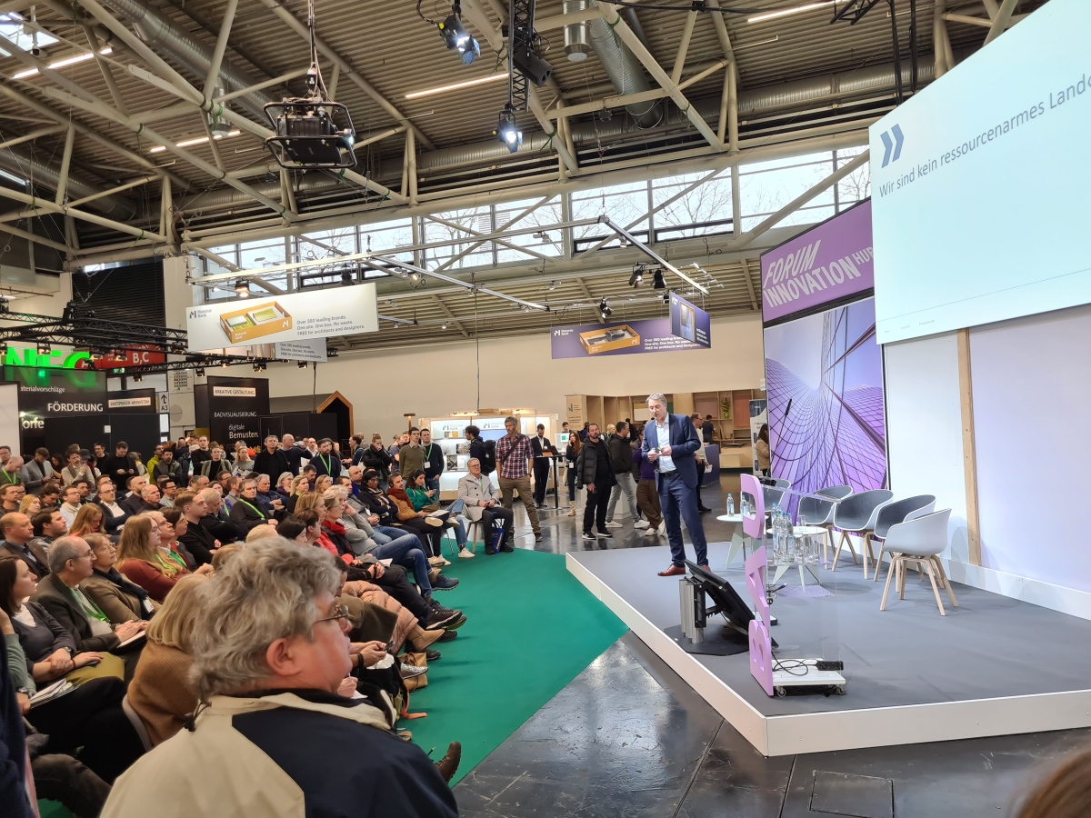Besondere Highlights setzten in dieser Hinsicht die Vorträge von Martin Rauch (Lehm Ton Erde Baukunst, Schlins) und Satoshi Ohashi (Zaha Hadid Architects, Peking). Am Donnerstag brachte zunächst Rauch, der als führender Experte auf dem Gebiet des Stampflehmbaus gilt, das Forum in der Halle A4 an seine Kapazitäten. Vor allem waren es viele junge Menschen, die der österreichischen Koryphäe lauschten und dafür sogar wie im Uni-Hörsaal in den Gängen saßen. Mit Blick auf das materialeffiziente und nachhaltige Bauen stimmt es uns optimistisch, dass Lehm als nicht endlicher Baustoff wieder stärker ins Bewusstsein tritt und sich gerade auch die junge Architektengeneration intensiv mit diesem Thema zu beschäftigen scheint.