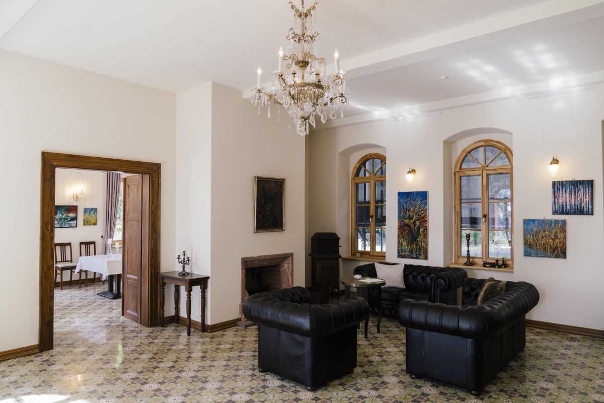 Mit der Fertigstellung des Erdgeschosses 2024 entstand ein erstes Highlight: Das Café mit Veranstaltungsräumen bietet Besuchern bereits heute eine besondere Atmosphäre. Holzvertäfelungen, restaurierte Stühle und neuelektrifizierte Kronleuchter verbinden sich mit moderner Technik – unsichtbar verlegt durch Glasfaserleitungen.