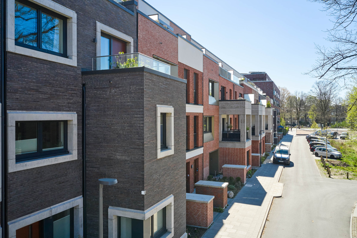 Zu den Preisträger 2020 gehörte auch die Hamburger Baugemeinschaft Stadtfinken. Aus dem Gelände der ehemaligen Klinik Finkenau wurde ein Stadtquartier entwickelt. Neben dem Fassadenmaterial Klinker und strengen Umweltstandards war vorgegeben, dass mindestens drei Architekten die geplante, 145 Meter lange Häuserzeile unter sich aufteilen und als maximal acht Meter breite Stadthäuser gestalten. (bhw/ela)