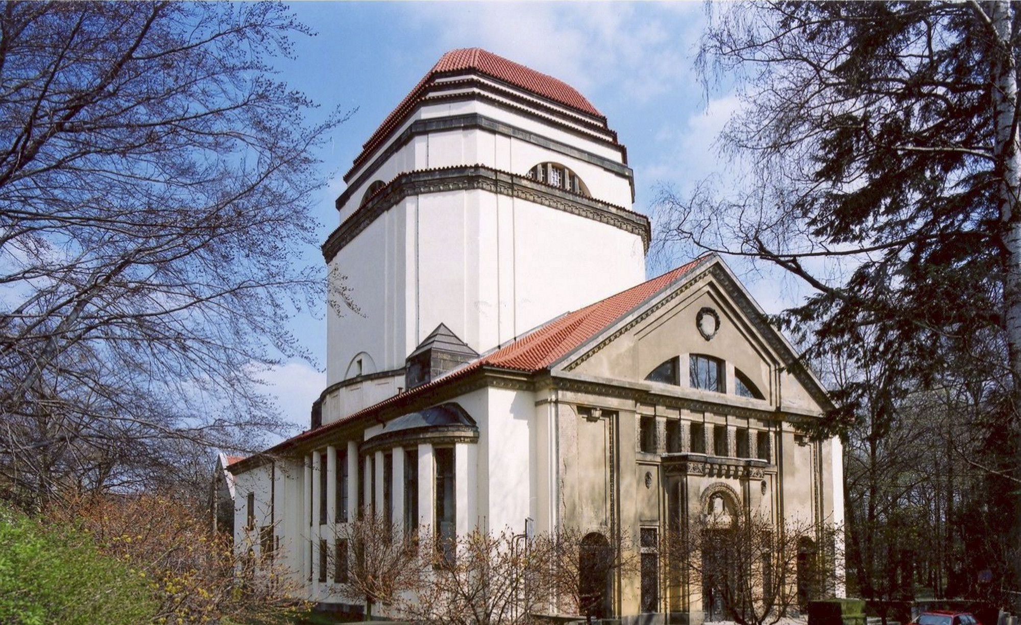 Das am 8. März 1911 eingeweihte Gotteshaus entstand nach Plänen der Dresdner Architekten Lossow & Kühne und ist als bedeutendes Werk des späten Jugendstils von überregionaler Bedeutung. Die monumentale Ausprägung der Baukörpergestaltung mit der harmonischen baukünstlerischen Innengestaltung gehört zu den bemerkenswerten Leistungen der Synagogenarchitektur in Europa. Der mächtige Bau dokumentiert das Selbstbewusstsein und die gesellschaftliche Anerkennung der jüdischen Gemeinde zu Beginn des 20. Jahrhunderts. Der voluminöse Bau wurde in Quadern errichtet - mächtige Lisenen, hohe Portale und ein Thermenfenster strukturieren die Fassade. Den hinteren Gebäudeteil überragt ein hoher quadratischer Turm mit Attika und Thermenfenstern. Der hohe turmartige Gebäudeteil bildet einen wichtigen städtebaulichen Akzent.