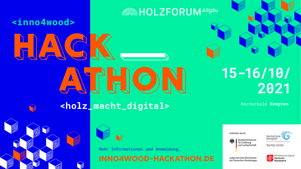 29.09.2021Auf dem ersten Inno4wood-Hackathon „Holz macht Digital“ am 15. und 16. Oktober 2021 an der Hochschule Kempten trifft sich die Holzbranche mit digitalen Machern.
