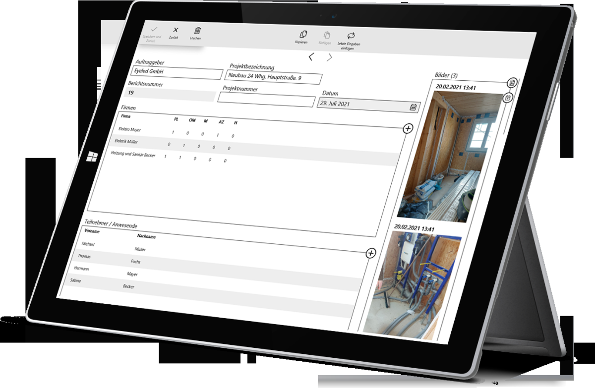 Da innerhalb eines Projekts häufig beispielsweise mit denselben Gewerken zusammen gearbeitet wird, können Eingaben des Vortags bequem für den aktuellen Tag übernommen und gegebenenfalls angepasst werden. Mit Vorgabewerten können zum Beispiel die Baustellenbezeichnung, der Auftraggeber oder die Projektnummer einfach vorausgefüllt werden. Das rationalisiert die Dokumentation und es bleibt mehr Zeit für die eigentliche Arbeit vor Ort.