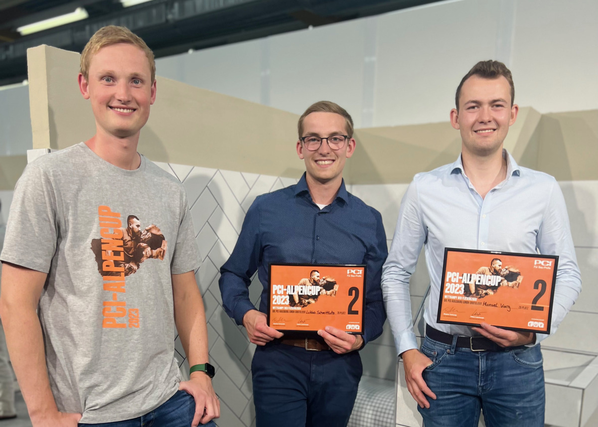 Der PCI-Alpencup fand zum dritten Mal statt: Die Premiere vor zwei Jahren hatten die deutschen Fliesenleger Silas Dulle und Tim Necker gewonnen. Am diesjährigen Wettbewerb nahmen neun Nationen teil, so viele wie noch nie – neu dabei waren die Teams aus Schweden und Norwegen. Nach Deutschland und der Schweiz übernahm nun Dänemark den Juryvorsitz. Die Aufgabe, die die neun Teams gestellt bekamen, war durchaus anspruchsvoll: Eine Wand mit Riemchen im Fischgrätmuster mussten sie diagonal verlegen, eine Sitzbank im Duschbereich sollte mit Mosaik verkleidet werden. Zudem brachten die Teilnehmer großformatige Wand- und Bodenfliesen an, auch der Waschtisch wurde verfliest.