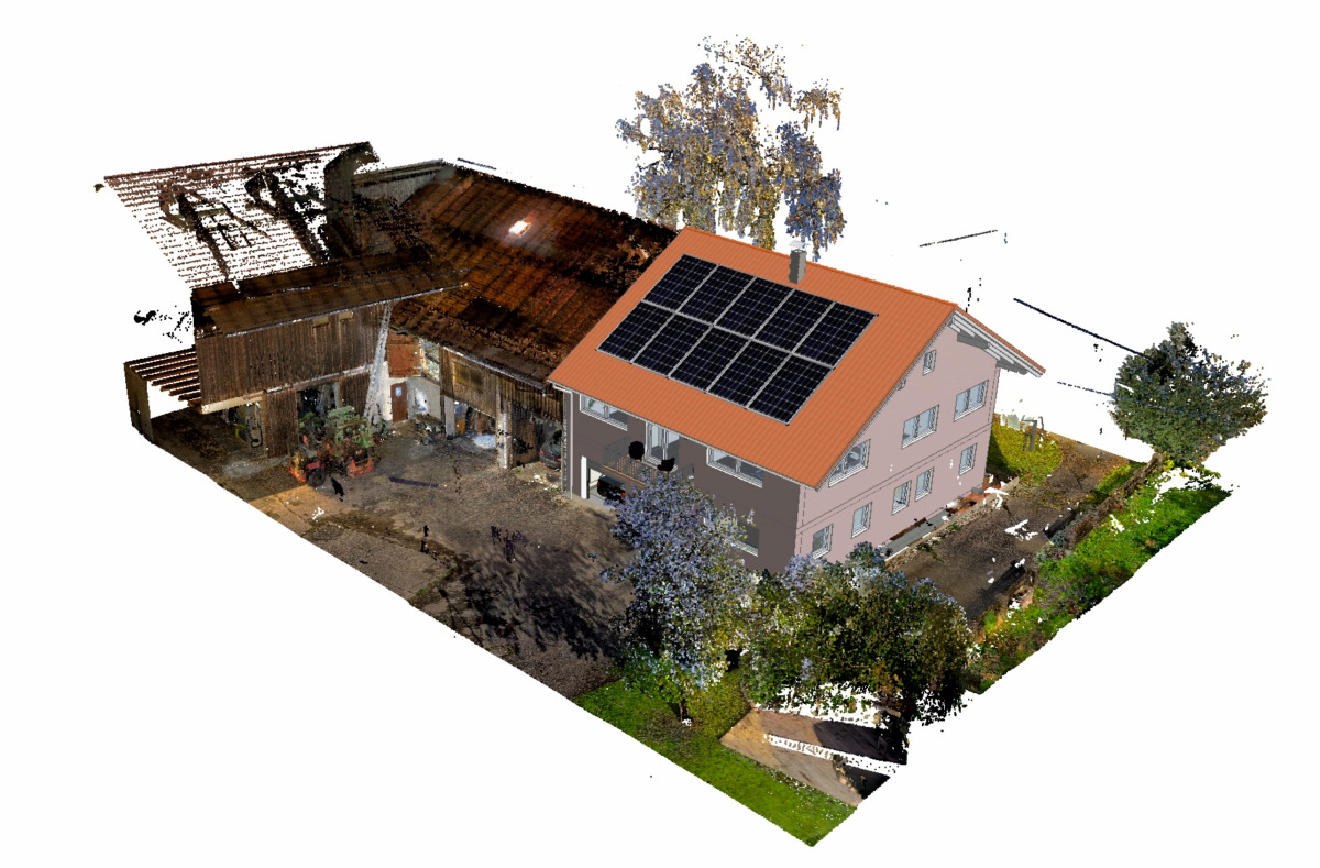 In Deutschland finden rund 80 Prozent der Bauprojekte im Bestand statt – durch die Umnutzung von Bauten oder durch (energetische) Sanierung, Anbauten oder Aufstockungen. Wird das dafür benötigte Aufmaß händisch aufgenommen, sind Messfehler bzw. fehlende Maße an der Tagesordnung und dadurch oft mehrfache Vor-Ort-Termine nötig. Der Laserscan ersetzt diese Methode mit moderner Technologie: Er bildet Maße, Neigungen und Krümmungen millimetergenau ab und erzeugt eine Punktwolke, die alle notwendigen Informationen vorhält. Zwar sind die Datenmengen groß, doch moderne Softwaretools erlauben es, die Punktwolke auch auf Computern mit durchschnittlicher Rechenleistung einzusetzen und sekundenschnell zu bearbeiten. Wichtig ist hier, dass Konstrukteur und Bauherr dennoch den Gesamtüberblick behalten, um Überraschungen zu vermeiden. Ein gutes CAD-Programm erlaubt deswegen, alle Daten in der Punktwolke schnell zu bewegen und zu bearbeiten und bietet Flexibilität im dreidimensionalen Raum: Abschnitte können aus der Punktwolke entfernt und Neue hineinkonstruiert werden.