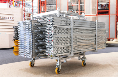 Die „Vario Box“ von Peri bietet beim Transport von Gerüstkomponenten oder Schalungsträgern ein optimiertes Packvolumen gegenüber Standardpaletten oder Gitterboxen. So lässt sich beispielsweise...