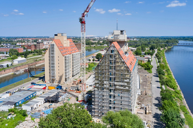 Zwei ehemalige „Reichseinheitsspeicher“ im Magdeburger Hafen wurden zu modernen Wohngebäuden umgebaut und sind heute Teil des entstehenden Wissenschaftsparks. Bei der Fassadendämmung entschieden sich...